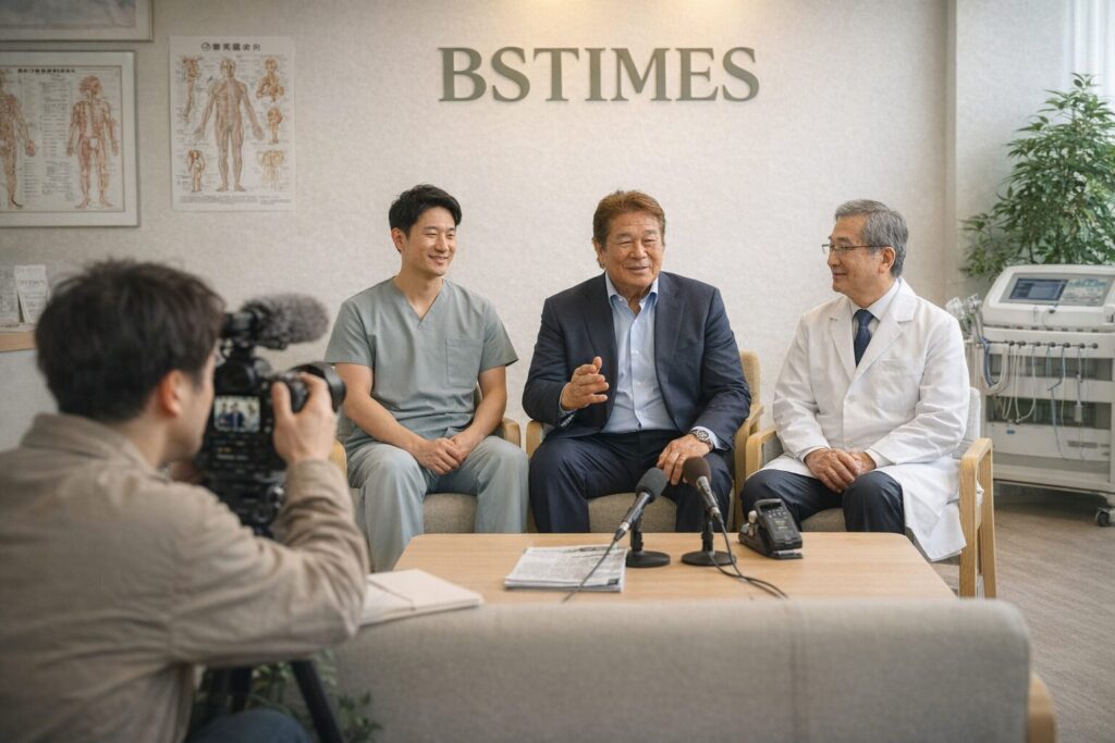 BSTIMESのメディア取材でプロレスラーの藤波辰爾さんが来院されました。