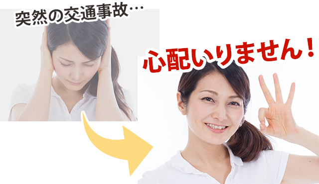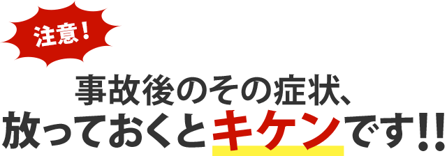 日常復帰の期間が変わります。事故の痛みや不調は後から現れるケースもあります。